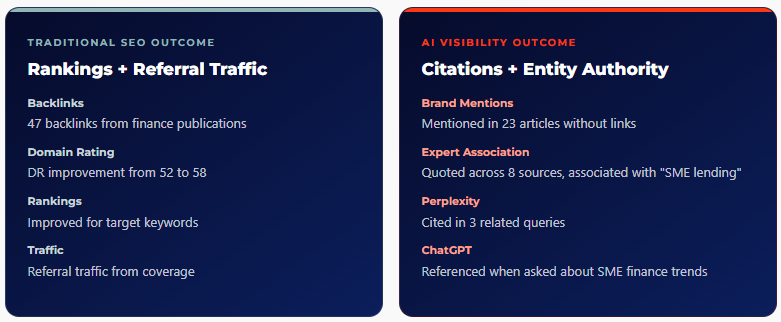 The research cost the same whether you are measuring links or citations. The expert commentary took the same time to prepare. The difference is that you are now capturing value in both traditional and AI search, instead of optimising for one and hoping the other follows.